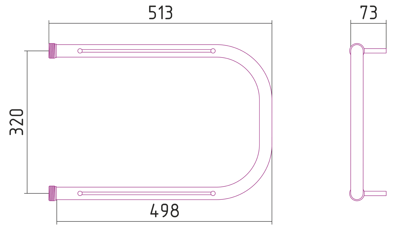 —Полотенцесушитель водяной Стилье П-образный 2П 320х500 резьба-сгон 1"