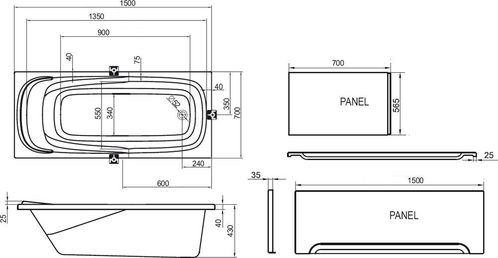 Ванна акриловая Ravak VANDA CO21000000 150x70 см.