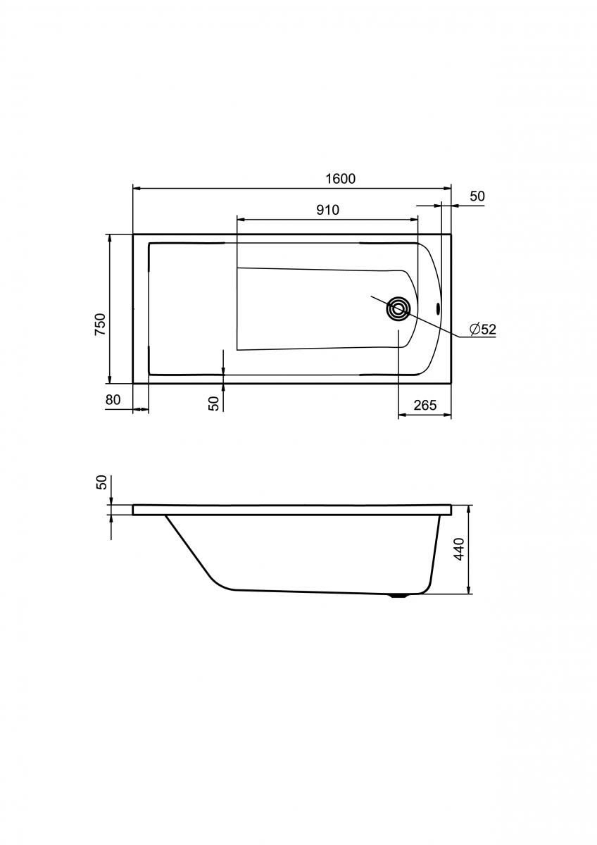 Ванна акриловая Santek ФИДЖИ 1.WH50.1.597 160x75 см.