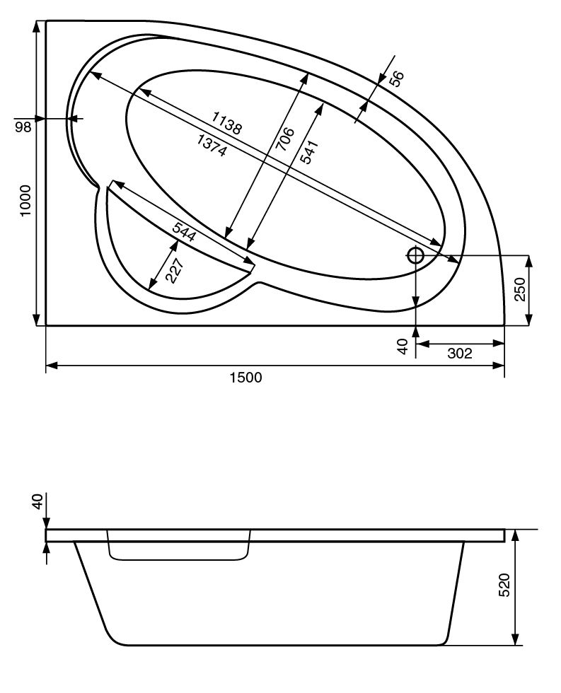 Ванна акриловая Santek ШРИ-ЛАНКА 1.WH30.2.395 150x100 см. правая